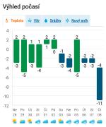 Během dne protrhávání oblačnosti až na jasno, noc na zítřek mrazivá