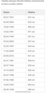 Tabulka rekordních hladin v Olomouci