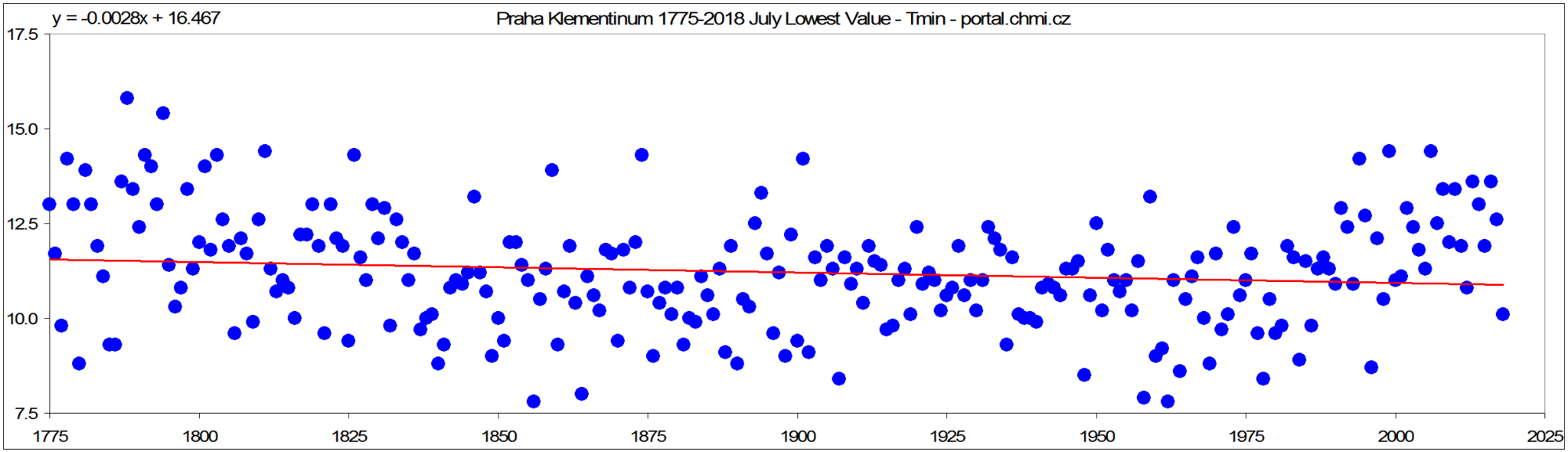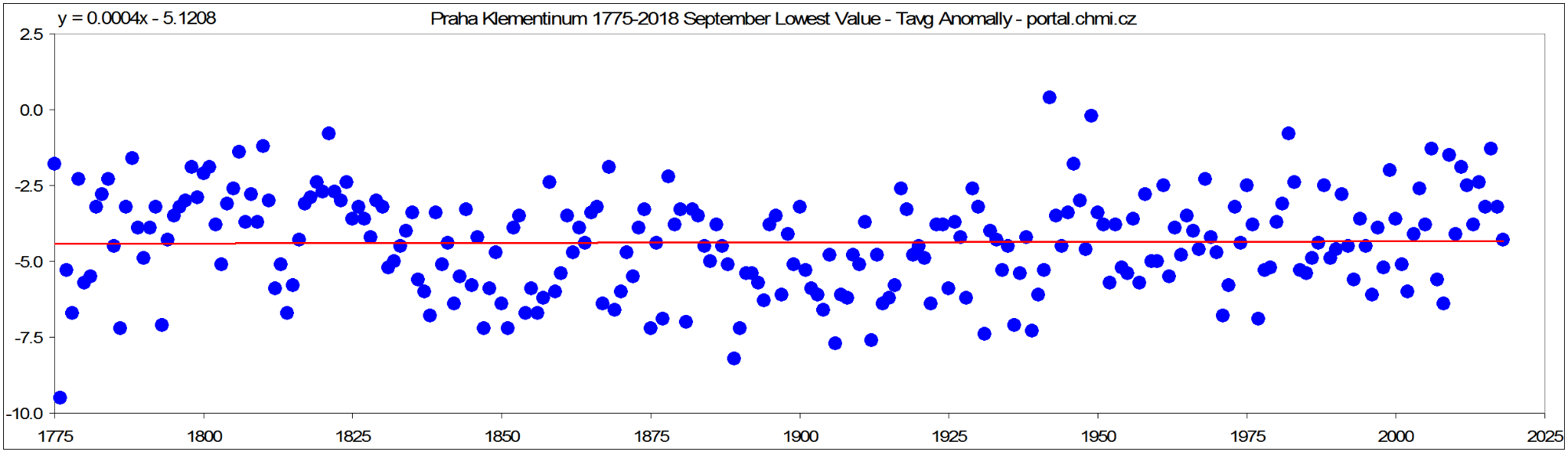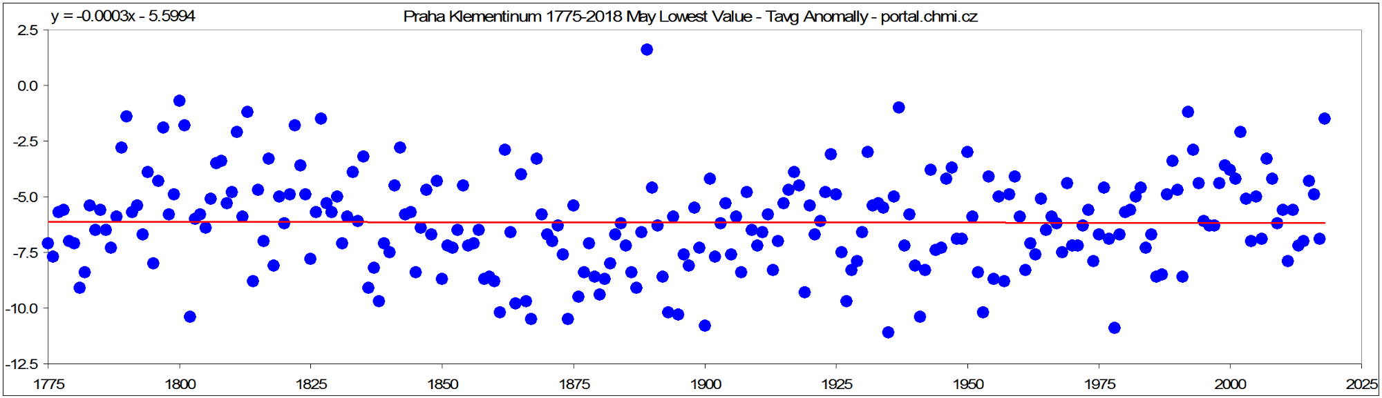 Pro kazdy mesic (leden, unor, brezen, duben, kveten, cerven, cervenec, srpen, zari, rijen, listopad, prosinec) byly spocteny prumerne, maximalni, minimalni hodnoty u dennich teplot prumernych, maximalnich, minimalnich, denni teplotni amplitudy a take dennich odchylek teploty prumerne, maximalni, minimalni od normalu ECAD 1775-2004. Take byl spocten pro kazdy mesic mesicni uhrn srazek a maximalni denni srazky v mesici. Data jsou pro teplotu 1775-2018 a pro srazky 1805-2018.