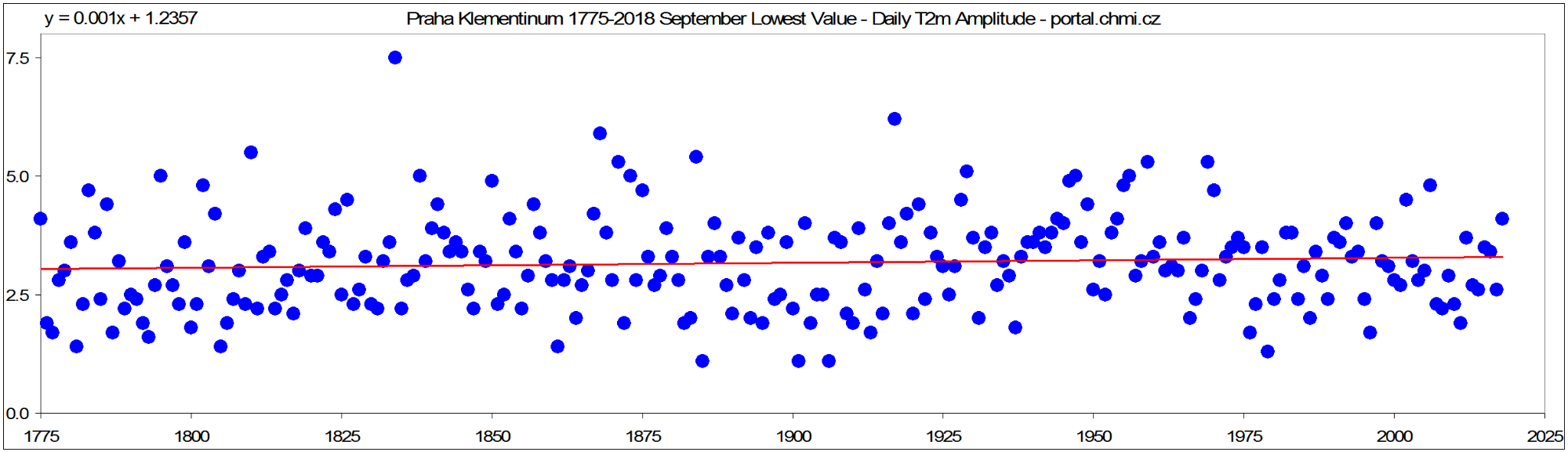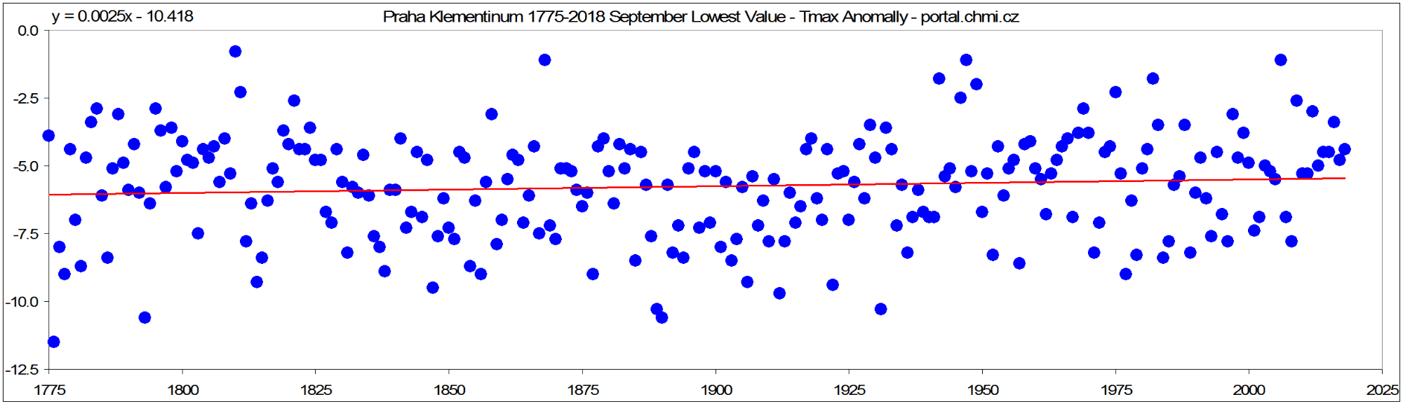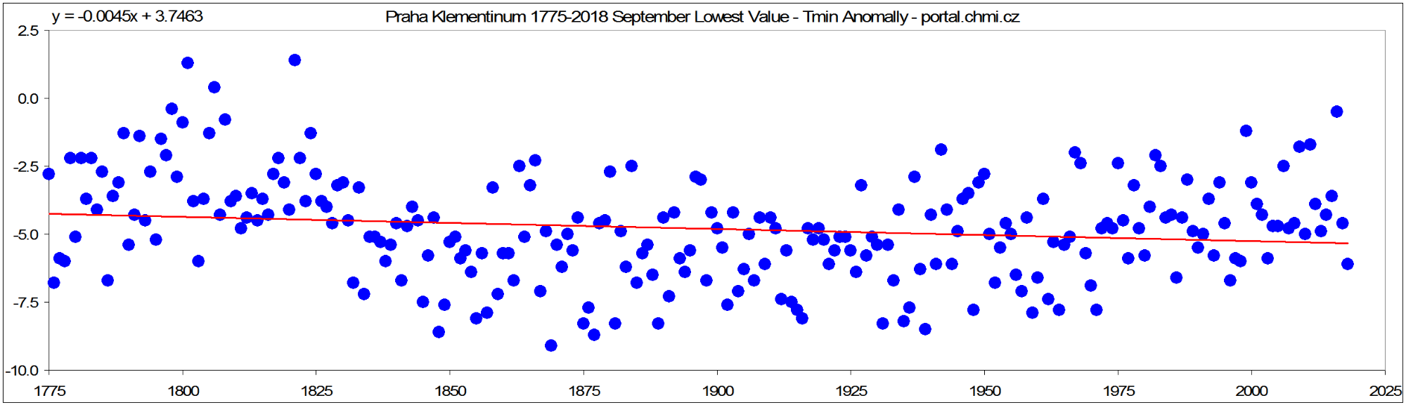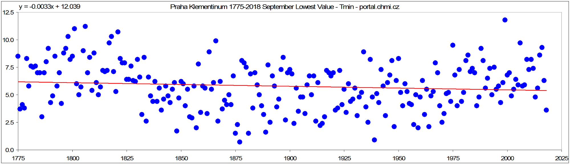 Pro kazdy mesic (leden, unor, brezen, duben, kveten, cerven, cervenec, srpen, zari, rijen, listopad, prosinec) byly spocteny prumerne, maximalni, minimalni hodnoty u dennich teplot prumernych, maximalnich, minimalnich, denni teplotni amplitudy a take dennich odchylek teploty prumerne, maximalni, minimalni od normalu ECAD 1775-2004. Take byl spocten pro kazdy mesic mesicni uhrn srazek a maximalni denni srazky v mesici. Data jsou pro teplotu 1775-2018 a pro srazky 1805-2018.