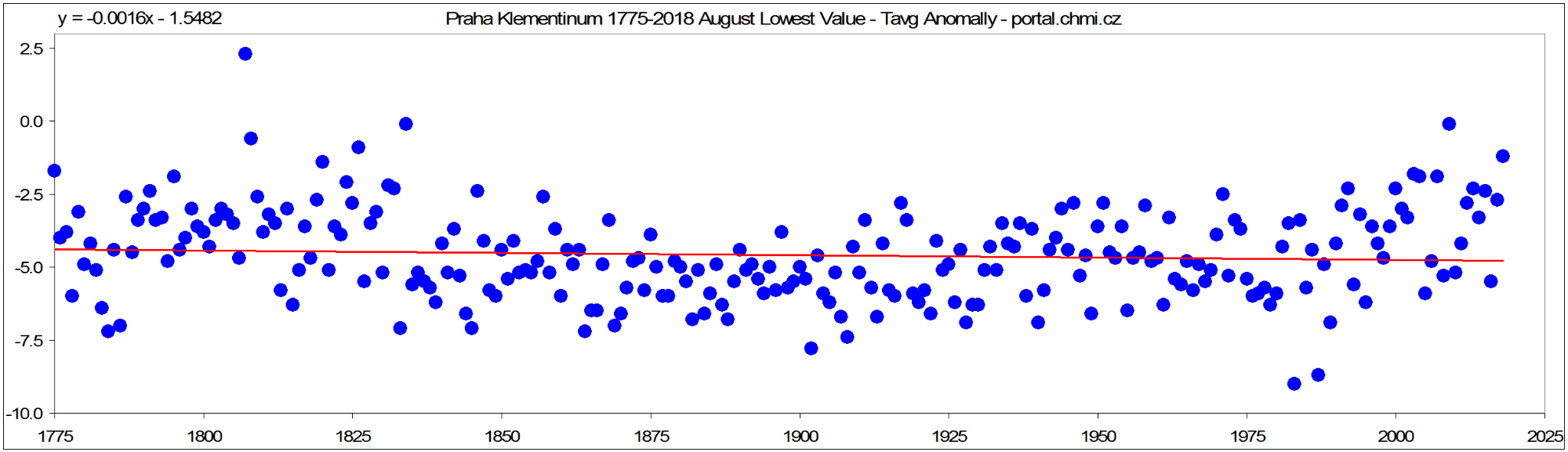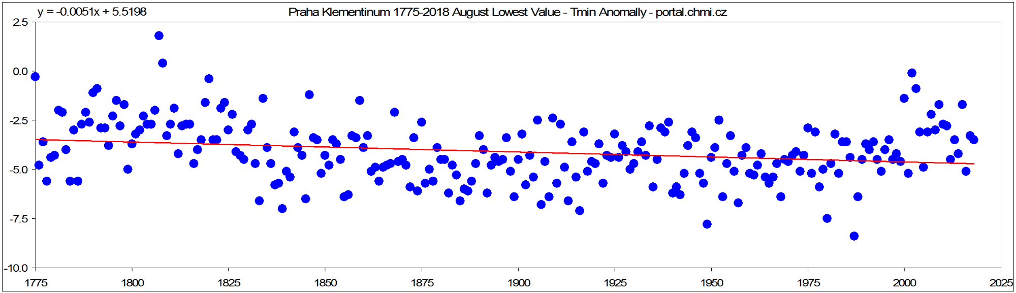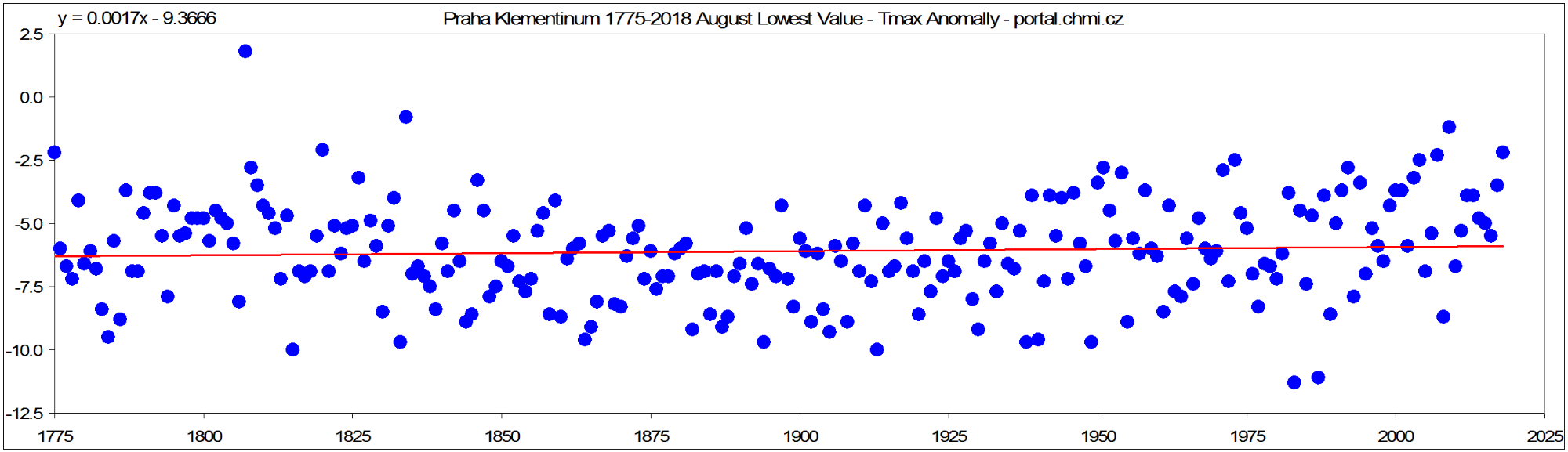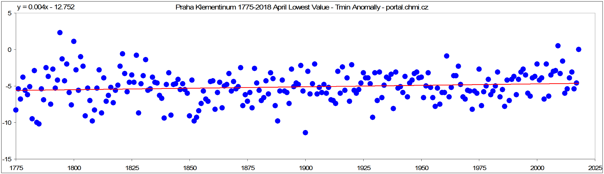 Opet doslo k pokroku se skriptovanim, a tak Pro obdobi 1775-2018 byly spocteny prumerne, maximalni, minimalni hodnoty i pocet dnu s danou charakteristikou ne jen pro cele roky a rocni obdobi, ale nove pro vsechny jednotlive mesice, tedy duben az prosinec za obdobi 1775-2018 v pripade teplot a 1805-2018 v pripade srazek. Pro kazdy mesic (leden, unor, brezen, duben, kveten, cerven, cervenec, srpen, zari, rijen, listopad, prosinec) byly spocteny prumerne, maximalni, minimalni hodnoty u dennich teplot prumernych, maximalnich, minimalnich, denni teplotni amplitudy a take dennich odchylek teploty prumerne, maximalni, minimalni od normalu ECAD 1775-2004. Take byl spocten pro kazdy mesic mesicni uhrn srazek a maximalni denni srazky v mesici.