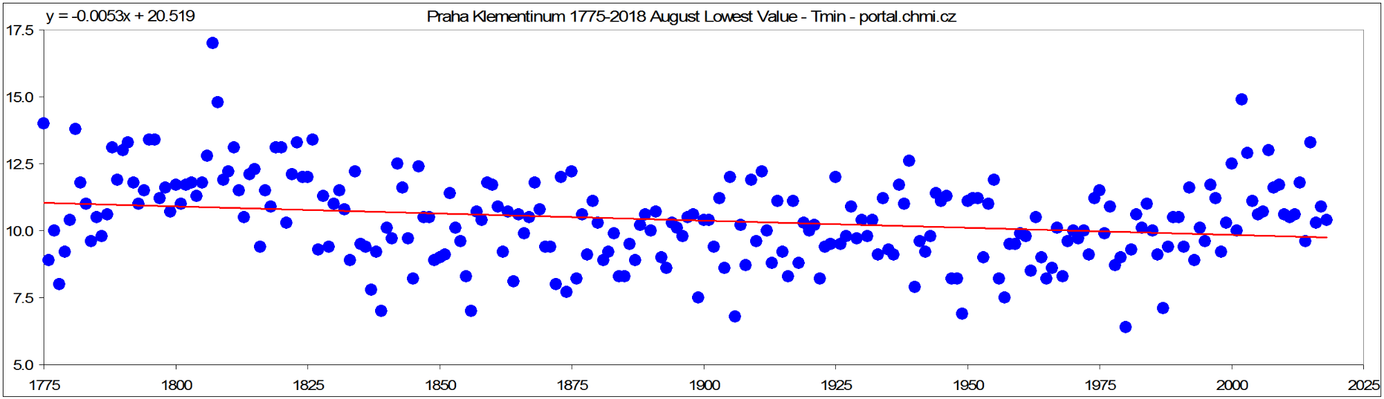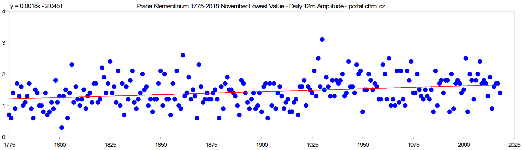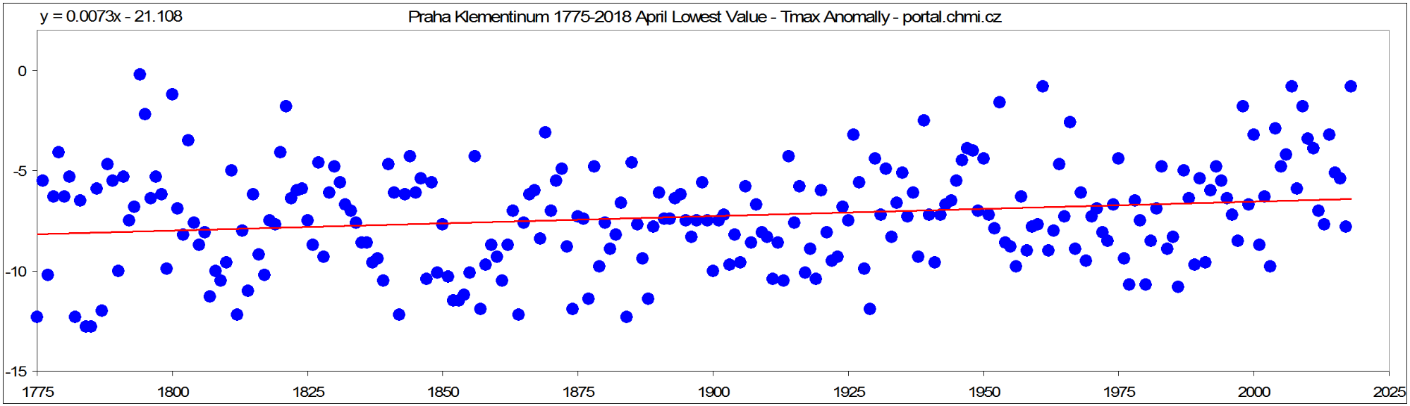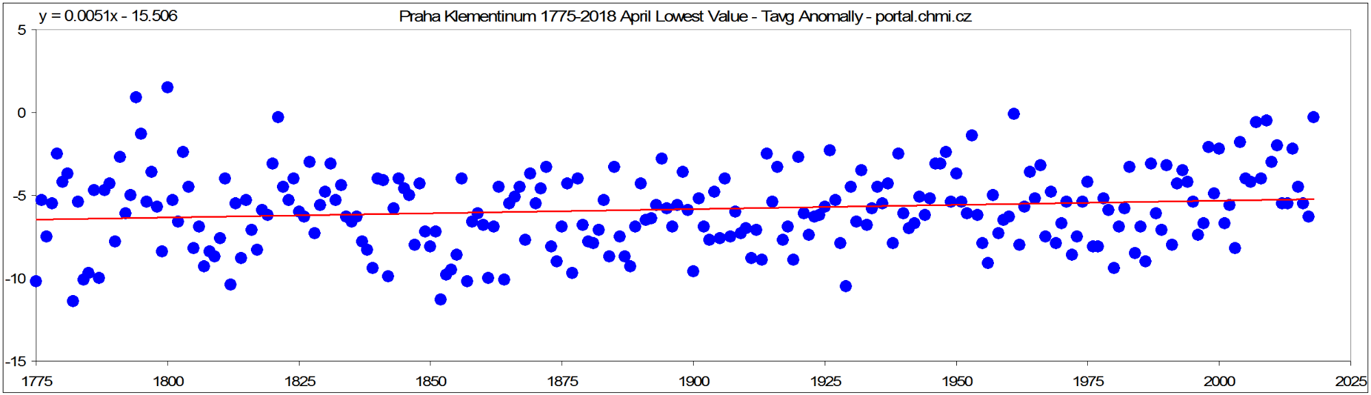 Opet doslo k pokroku se skriptovanim, a tak Pro obdobi 1775-2018 byly spocteny prumerne, maximalni, minimalni hodnoty i pocet dnu s danou charakteristikou ne jen pro cele roky a rocni obdobi, ale nove pro vsechny jednotlive mesice, tedy duben az prosinec za obdobi 1775-2018 v pripade teplot a 1805-2018 v pripade srazek. Pro kazdy mesic (leden, unor, brezen, duben, kveten, cerven, cervenec, srpen, zari, rijen, listopad, prosinec) byly spocteny prumerne, maximalni, minimalni hodnoty u dennich teplot prumernych, maximalnich, minimalnich, denni teplotni amplitudy a take dennich odchylek teploty prumerne, maximalni, minimalni od normalu ECAD 1775-2004. Take byl spocten pro kazdy mesic mesicni uhrn srazek a maximalni denni srazky v mesici.