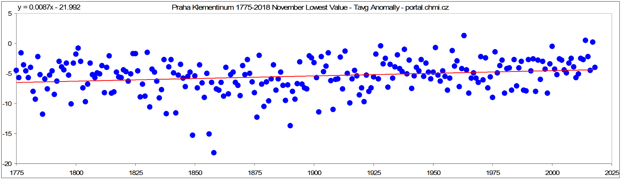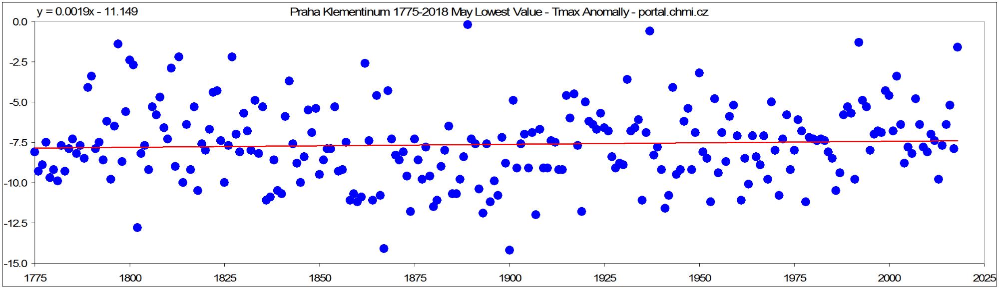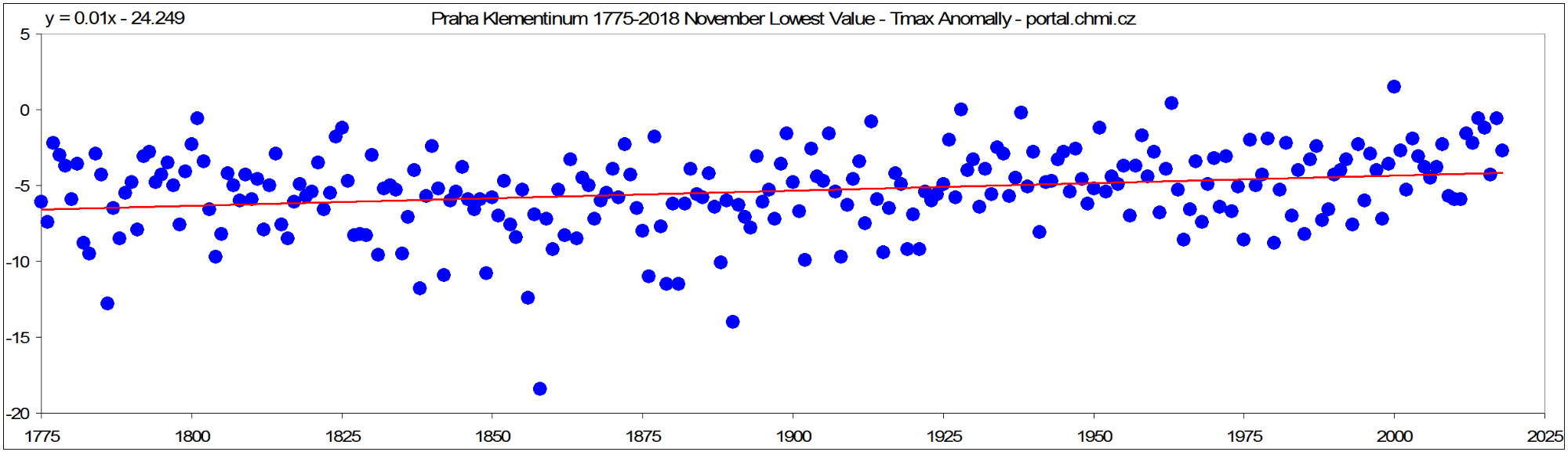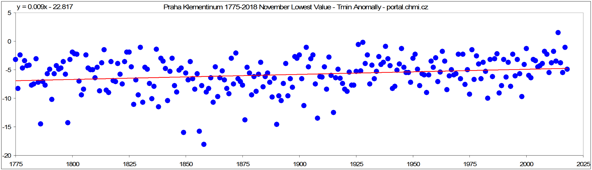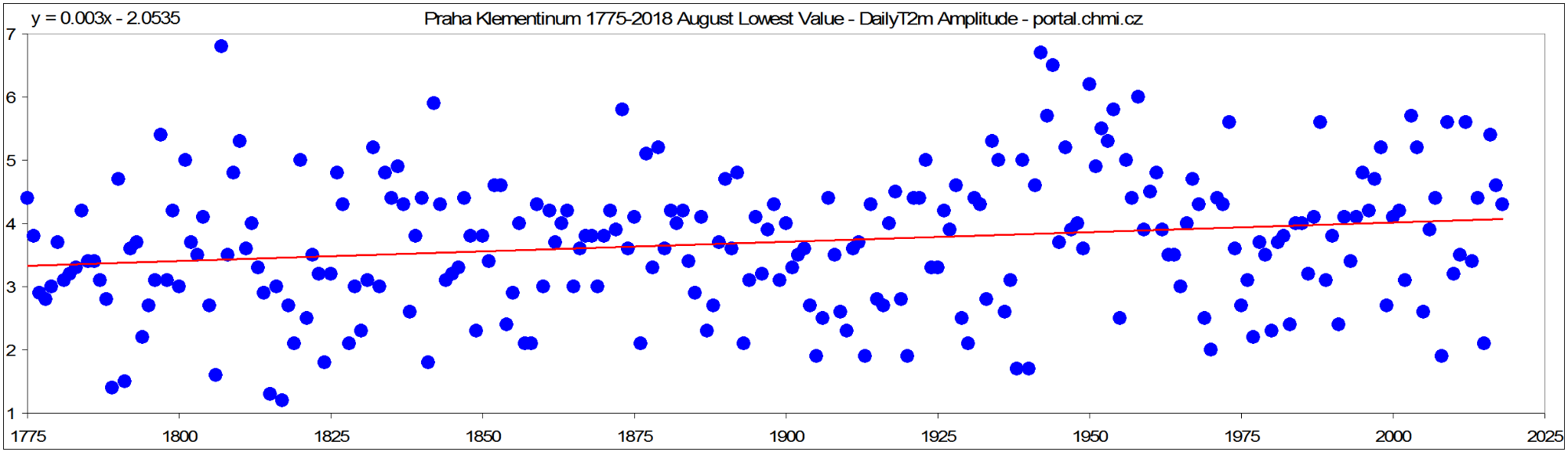 Opet doslo k pokroku se skriptovanim, a tak Pro obdobi 1775-2018 byly spocteny prumerne, maximalni, minimalni hodnoty i pocet dnu s danou charakteristikou ne jen pro cele roky a rocni obdobi, ale nove pro vsechny jednotlive mesice, tedy duben az prosinec za obdobi 1775-2018 v pripade teplot a 1805-2018 v pripade srazek. Pro kazdy mesic (leden, unor, brezen, duben, kveten, cerven, cervenec, srpen, zari, rijen, listopad, prosinec) byly spocteny prumerne, maximalni, minimalni hodnoty u dennich teplot prumernych, maximalnich, minimalnich, denni teplotni amplitudy a take dennich odchylek teploty prumerne, maximalni, minimalni od normalu ECAD 1775-2004. Take byl spocten pro kazdy mesic mesicni uhrn srazek a maximalni denni srazky v mesici.