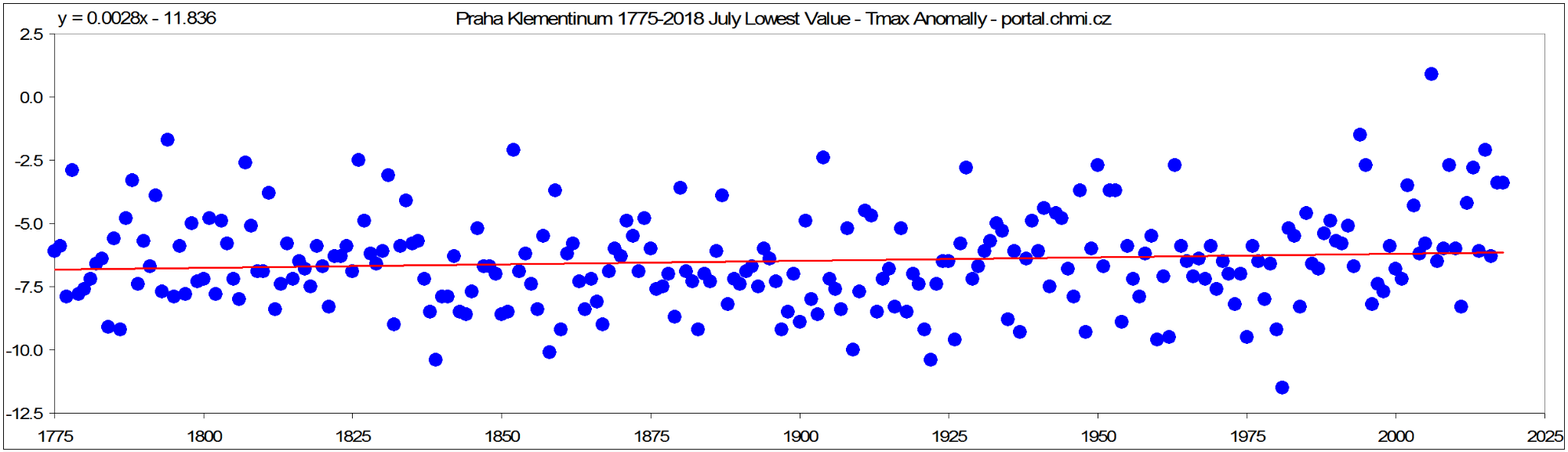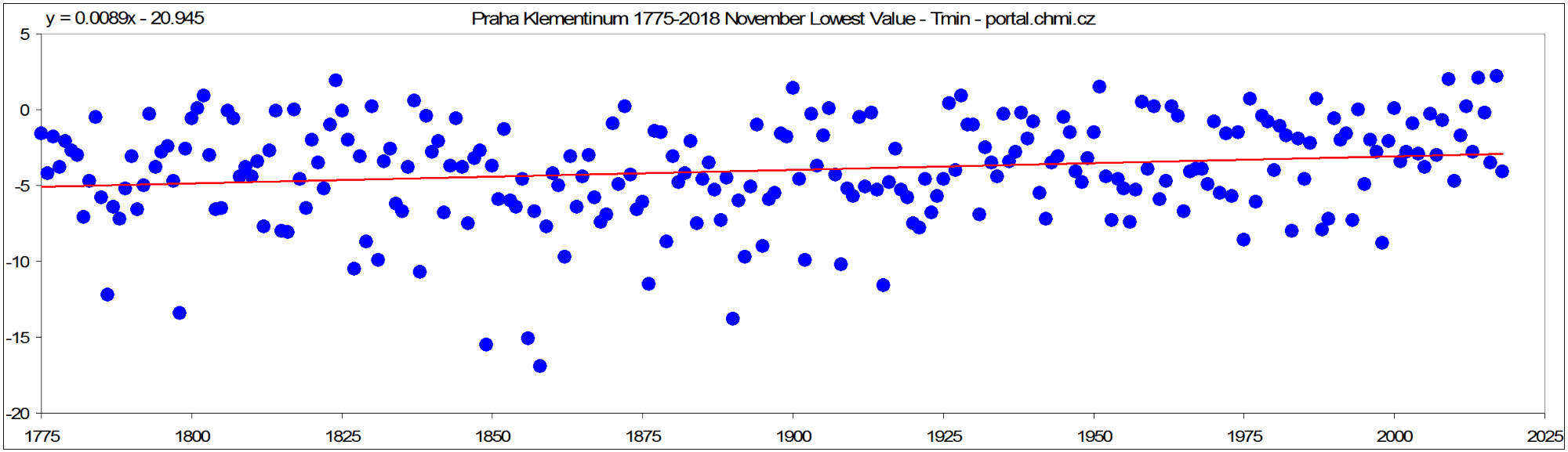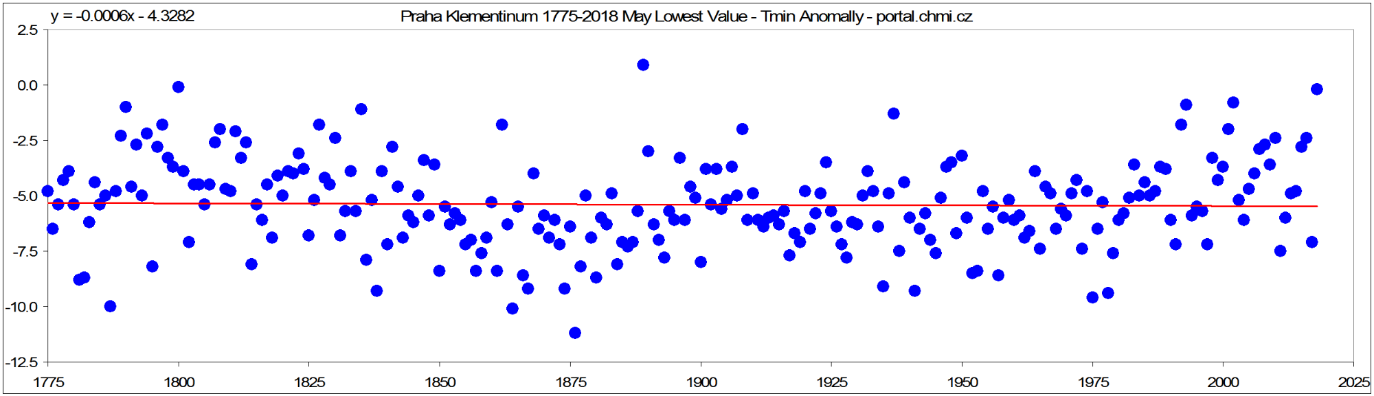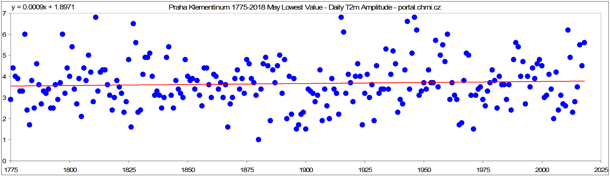 Opet doslo k pokroku se skriptovanim, a tak Pro obdobi 1775-2018 byly spocteny prumerne, maximalni, minimalni hodnoty i pocet dnu s danou charakteristikou ne jen pro cele roky a rocni obdobi, ale nove pro vsechny jednotlive mesice, tedy duben az prosinec za obdobi 1775-2018 v pripade teplot a 1805-2018 v pripade srazek. Pro kazdy mesic (leden, unor, brezen, duben, kveten, cerven, cervenec, srpen, zari, rijen, listopad, prosinec) byly spocteny prumerne, maximalni, minimalni hodnoty u dennich teplot prumernych, maximalnich, minimalnich, denni teplotni amplitudy a take dennich odchylek teploty prumerne, maximalni, minimalni od normalu ECAD 1775-2004. Take byl spocten pro kazdy mesic mesicni uhrn srazek a maximalni denni srazky v mesici.
