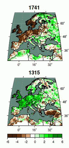 Obr. 5 - Mapa extremniho sucha v zapadni Evrope 1740-1741.