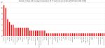 Ještě jeden graf - Kolik dní s průměrnou teplotou +30.0 °C a více se vyskytlo na jednotlivých stanicích v letech 1961-2025. Celkem na 55 různých stanicích se vyskytl v období 1961-2025 alespoň jeden den s průměrou teplotou +30.0 °C a více. V základní staniční síti je však stovky stanic a na většině stanic nebyl takový den ani jeden.