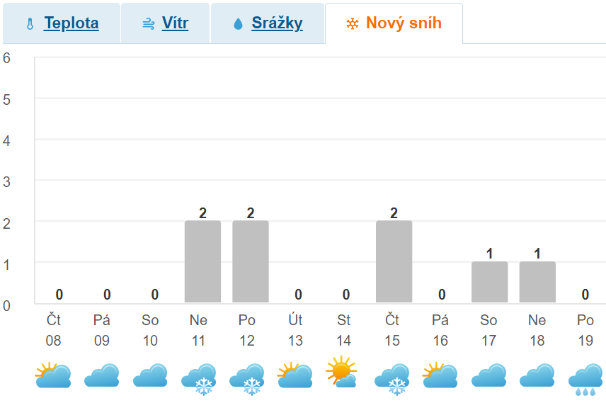 A dopadlo to tradičně, níže odsunuta mimo ČR takže nikde nic nenapadne, max východ něco. Pěkné to byly pohádkové úhrny ale bude nula. Tradice se těžko lomí.
