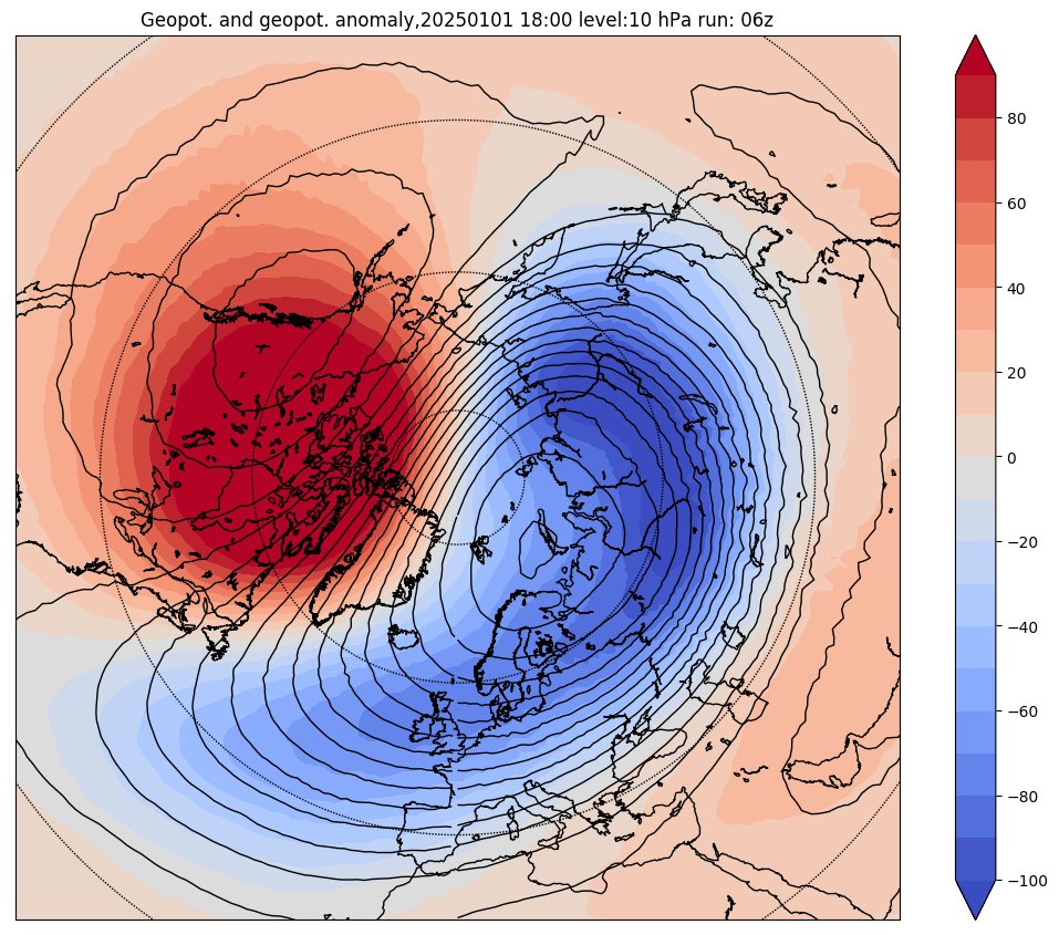 Především zajímavý poznatek je, že AO index je nastavený na hladinu 1000 mb = 1000 hPa, takže zobrazuje vlastně jenom přízemní hladinu, nikoliv stav vysoko v atmosféře. Tam jsou nyní hodnoty blízko normálu a má to tak zůstat. Ve výšce je ovšem PV velmi silný a téměř na rekordních hodnotách, což se dá dobře dohledat na weather is cool, kde jsou vždy shrnuty ty základní informace.