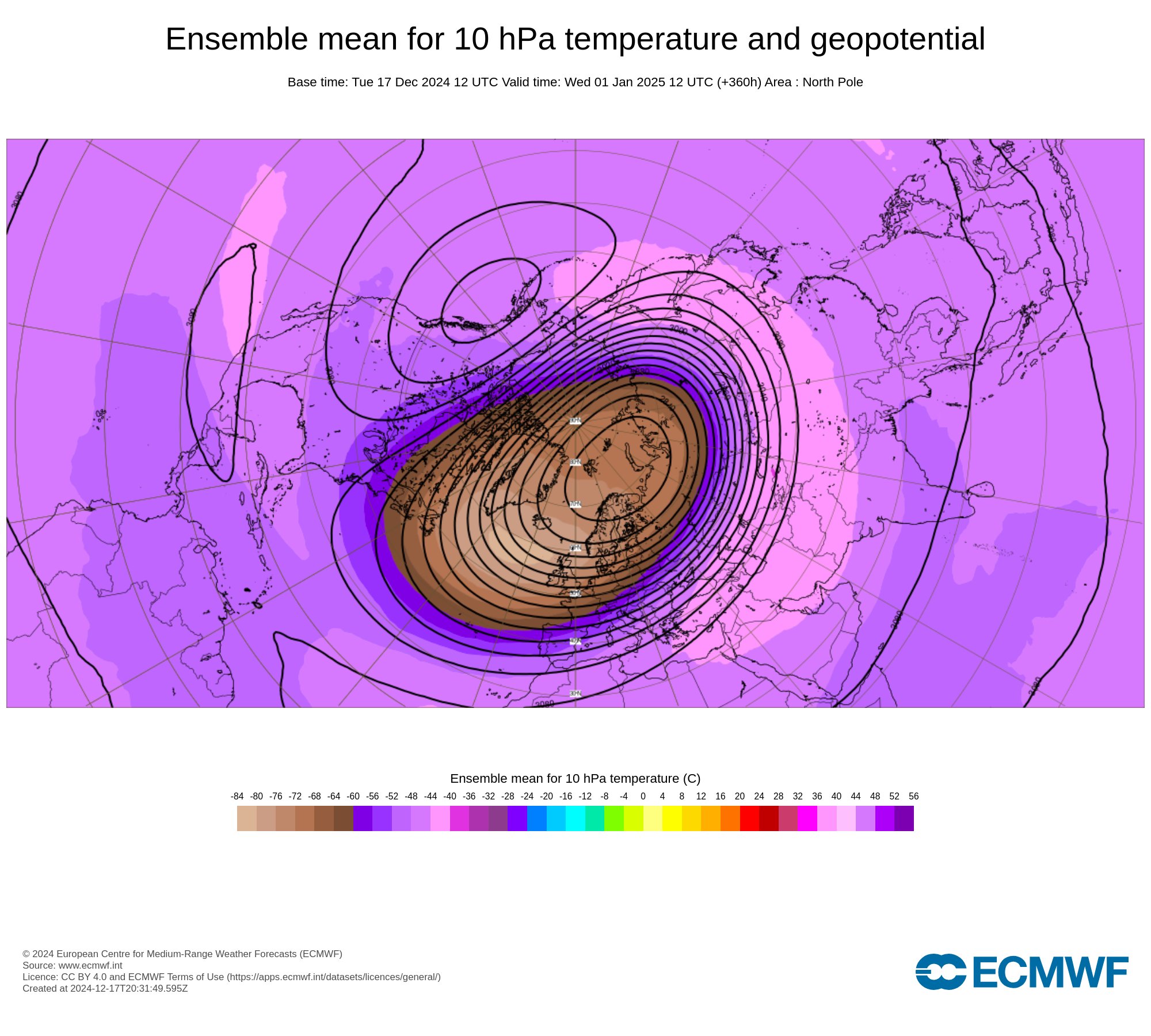 Nicméně zpět k oteplení. Proč o něm píšu. Existuje jistá možnost, že díky roztaženému PV by stratosférické oteplení mohlo usnadnit cestu k blokaci atlantiku, takže pokud nám GFS a GEFS budou i nadále slibovat co druhý výstup šanci na toto oteplení, tak dle mého je reálná šance na nějakou změnu kolem poloviny ledna. Záležet bude co udělá toto "teoretické" oteplení se sílou polárního vortexu. Letos je polární vortex mimořádný ve stratosféře svojí velice silnou strukturou. Ono tato situace je poměrně stabilní, ale pak může nastat nějaký event SSV a PV se začne natahovat a natahovat až někde prdne a pak to jde poměrně rychle. Zatím v modelech nevidím moc velkou naději na velké oslabení až rozpad. Není tam až tak velký tlak aby se tak stalo, ale vidím tam možnost rozdělení PV v případě výraznějšího oteplení podél Arktidy, což nám GFS týden zpět věstil ale sešlo z toho. U Kanadského oteplení navíc funguje krásná magická formule, že čím více je protaženo podél PV k východu, tak tím větší naděje je na propagaci do nižších hladin, což by vedlo k blokaci nad Grónskem.