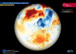 Zimní období se oteplilo všude na světě, ovšem nejvíc a extrémně hodně se oteplilo v Arktidě a zejména nad severním ledovým oceánem. Přitom když si tu stejnou mapu navolíte pro celý rok, pro všechny roční období, pak je ta odchylka v Arktidě mnohem mírnější.
