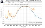 Další: rozloha ledu v porovnání s dosavadním minimem v roce 2012.. za pár dní se to potká, jestli vznikne nové minimum... uvidíme, rozdíl v teplotách okolo pólu je již, bohužel, skoro +15 stupňů.. při kolika pod nulou vůbec mrzne mořská voda? (-2 až -3 podle salinity, vzniká solanka a led..) poslední je ten graf saktuálními teplotami na tom pólu a okolí... potěšující to není, kde by to bylo dobré zamrzlé, tam neí po ledu ani památka,, zatím tedy...