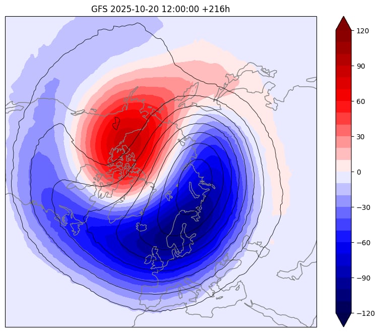 To vše vytváří jakýsi modus operandi, kdy se nám vortex jednak nerozvijí co se struktury a rychlosti větru týče. GFS v minulých výstupech měl spíše výraznější "kick on" a posílení rychlosti větrů, ale to se nám s dalšími výstupy až tak nepotvrzuje a je v tom prozatím sám. ECMWF viz minulý příspěvek očekává spíše současný stav, tedy mírný podprůměr a stále dislokovaný polární vortex, GEFS očekává podobné dění a GFS přechodně asi na 5-8 dní lehounký nadprůměr.