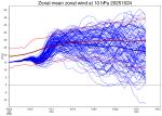 Jinak zde přidávám výhled zonálních větrů od ECMWF. Ten pokles souvisí s vlnou stratosférického oteplení ve střední a dolní startosféře s propojením do horní troposféry, půjde o sekvenční oteplení, žádný velký extrém, ale decentní oteplování trvalejšího charakteru.