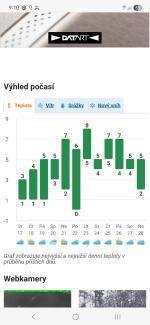 No, teď trošku..ochladí se, to už je myslím jasný, a taky teda by to byl průser, kdyby jsme tu delší dobu měli ty teploty z minulého týdne, takže pokles z docela nadprůměru, někam k průměru.. ano souhlas, no a sněžení... tak to už je uplná loterie..Když tady bude aspoň k 5 cm.. paráda.