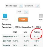 To u nás v prosinci i s dneškem 20 dní nadprůměrných, půlka z toho výrazně, jeden den podprůměrný a to 1.12.