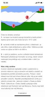 Jinak k tomu grafu. Toto je pouze jedna z variant, kdy z pohledu nížiny je nízká oblačnost, z pohledu středních/vyšších poloh mlha a z pohledu hor slunce. Stačí to posunout trochu níže a je varianta, že mlhu mají nížiny a slunce je od středních a vyšších poloh. A je mi jasný, kam to směřujete, že prostě v nížinách je to nuda, jen nízká oblačnost bez námrazy atd. No tak stačí vyšlápnout někam na kopeček a je to... a nemusím propadat tomuto negativismu typu, že inverze je většinou při slabě kladné teplotě = něco špatného, negativního atd.