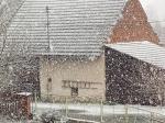 Dnes ráno jsem vylil ze srážkoměru 22 mm, byly v tom i srážky v noci na včerejšek, včetně sněžení dnes v noci. (škoda, že to nebylo ve sněhu ) Včera, zejména odpoledne lilo slušně při 2,5, okolo 9 hodiny večer se to začalo měnit na sníh s tím, že v 10 již byl mokrý poprašek na rozmoklém povrchu se zbytky sněhu, který napadl zde před třemi dny. Nestačilo vše zmizet, zbylo něco na 50 procentech plochy. Ráno 3-4 cm, nyní se blížíme k deseti s tím, že sněžit ještě nějakou dobu bude. Padne 15 cm? Nelze vyloučit.