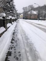No dobrý,už moc neschází k těm historickým rekordům,samozřejmě pod KH (CV,Litvínov apod) to až tak vyjímečné není.Vyfotil jsem naší ulici,po které jsme jako děti bobovaly až dolů na hlavní silnici.O víkendu nejezdila žádná auta,a to měl kdysi Most víc obyvatel,než dnes.Pokud jde o metry a pravítka (jako důkaz),když si jej na začátku ulomím (ohnu),stejně u té vyšší pokrývky poznáte prd