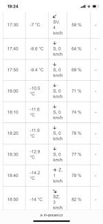 Je to ta WH1080, na to si několik lidí stěžovalo, že je nekvalitní. Možná je to tím, co píšeš, ani jsem nevěděl, že to může mít až takový vliv. V noci ale problém není a opět se to potvrzuje, aktuálně u nás -5,8 °C a Žabovřesky -5,9 °C. Takže asi jde sledovat minima i přímo tady u mě a pro maxima je lepší kouknout se na ty Žabovřesky.
