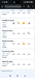 tahle epizoda již teď téměř jistě bude silně konkurovat únoru 21, zejména teplotně, sněhově bude zaostávat. ty minima neděle-pondělí budou možná dost drsný a i maxima by mohly být hodně nízky i přes slunečnější počasí. jen ať zima jede, klidně i ještě dýl, než se aktuálně předpovídá