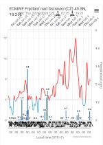 ECMWF: dráhu lehce posunul k východu a to tak, že na Moravě a ve Slezku by mělo zpočátku pršet, později sněžit, úhrny většinou 10-15 mm/cm. Čechy a to obzvláště JZ i 0 mm, jinak 0 - 3mm/cm.