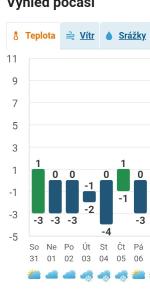 Dobre rano,tak nam v noci ikdyz radar nic neukazoval,pripadlo cca 1cm snehu,celkove mame 3-4cm,snezeni slabeho typu pokracuje dale,je to nejspis z nizke oblacnocti ktwra se tu drti,teplota stala na -2,3°C,ten pristi tyden vypada ze to sleze,ale prognozy se mi zda cim dal vic rozchazi tak uvidime,kazdopadne ikdyz jsem to uz necekal tak snehova pokryvka pokracuje,na boby to nejspis uz bude taky