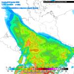 Hlavně příliš příznivý není teplotní profil - bude to vlhký sníh, ve výšce příliš chladno není. V nížinách i část sněhu odtaje. Pokud by takové úhrny přišly při nižších teplotách, tak dají podstatně více sněhu. Někde ale těch 10 mm spadne (což by při nízkých teplotách dalo třeba i přes 15 cm sněhu, takto to dá těch max 10 cm).
