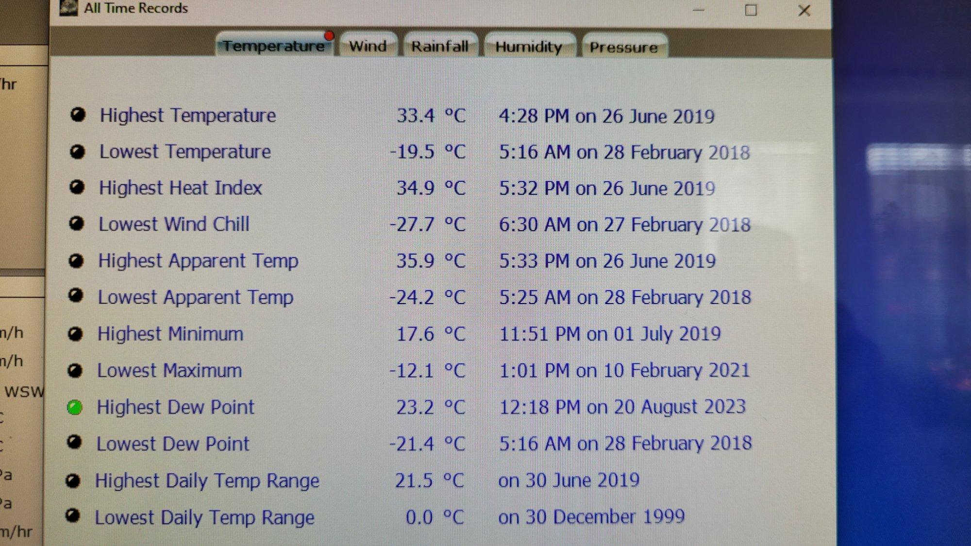 V posledních 10 dnech mi meteostanice už po třetí hlásí dosažení nového rekordu hodnoty rosného bodu. Zajímavé je, že k překročení nedošlo v horkém počasí po dešti, ale vždy před tím nepršelo déle jak 24 hodin. Jde bohužel jen o sedmiletou historii měření. Existují lehce dostupné dlouhodobější záznamy u nás buď absolutní vzdušné vlhkosti nebo rosného bodu?