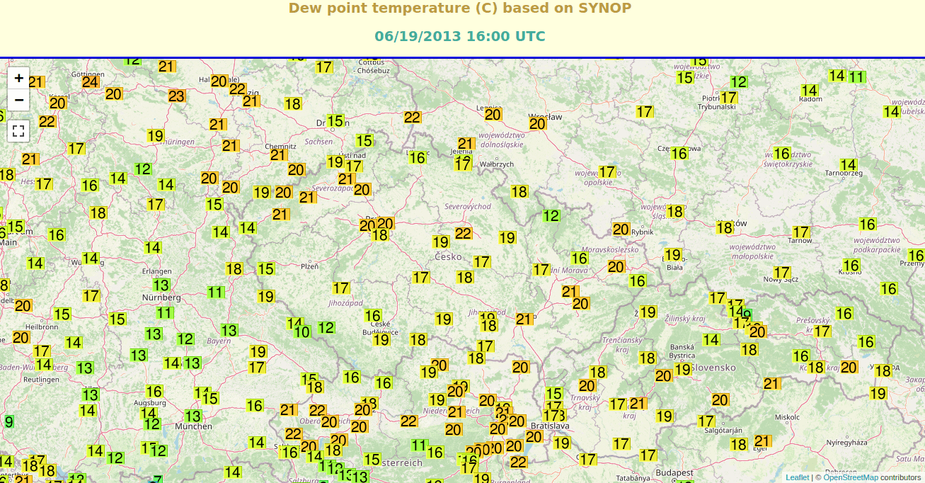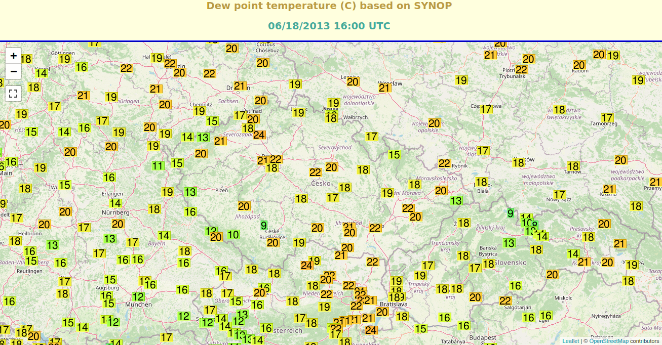 Na techto stanicich se rosny bod pohybuje v maximu v rozmezi 21.5-23.0 podle situace, teplota ve stejnou dobu muze byt az nad +30. 18-20.08.2013 byly dosaheny hordnoty rosneho bodu jeste vyssi.