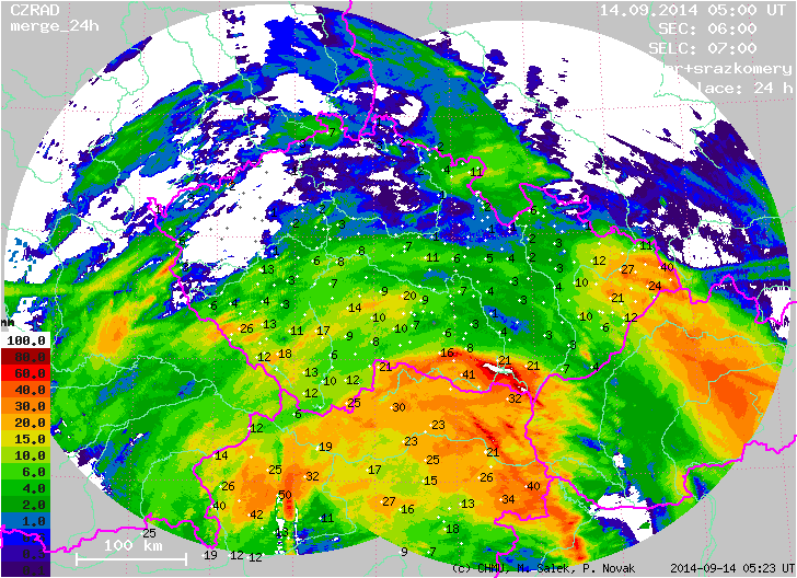 Na jižní Moravě v noci opravdu intenzivně pršelo. Podle článku na idnes napršelo za 24 hodin v Dolních Věstonicích 135 mm. Že je to možné potvrzují i odhady radaru. U nás na střední Moravě naštěstí pršelo výrazně méně, za posledních 24 hodin 8,5mm. Od čtvrtka pak dohromady spadlo 42 mm.