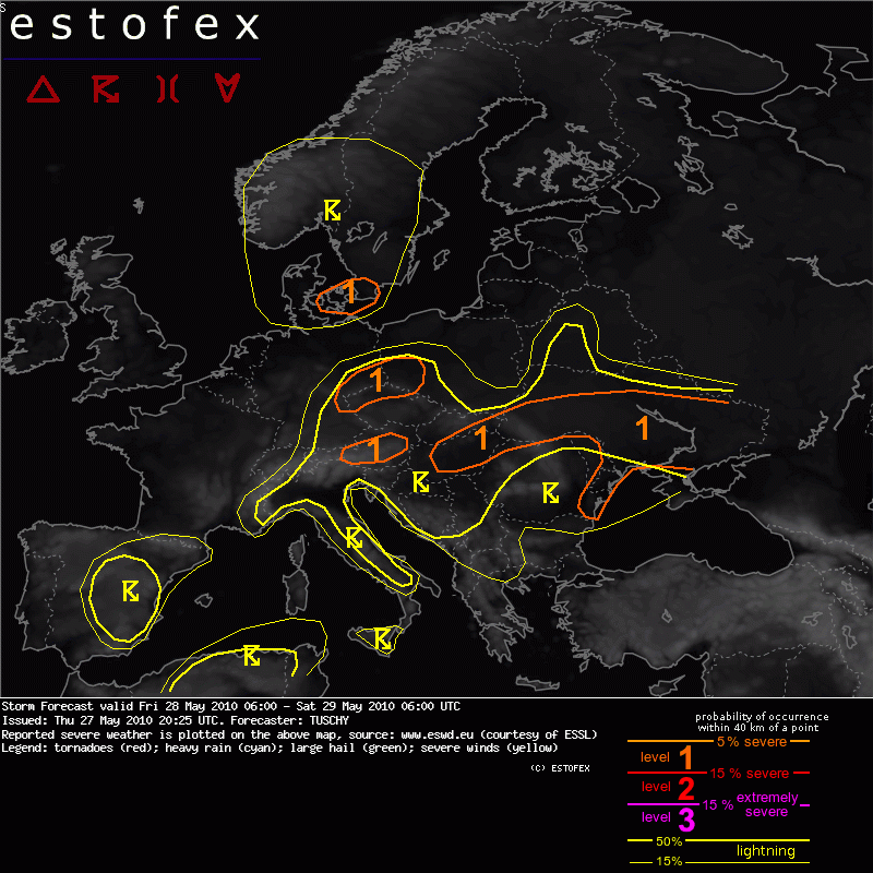 Marek 2 116 # 28.05.2010, 07:19 Vypadá to na bouřky především na severozápadě nebo severu Čech, ESTOFEX i SKYWARN vydaly pro tyto oblasti stupeň 1. Tady jsou odkazy: ESTOFEX, SKYWARN