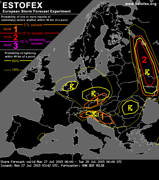 Když to tedy posčítám, tak na pesimistické předpovědi to byl naprosto neuvěřitelný a fantastický den, který nám přinesl hned 3 bouřky, z toho dvě přímé a jednu okrajovou. První byla letos zatím druhou nejsilnější bouřkou v roce (po bouřce ze 30. května), jelikož přinesla přívalový déšť, nárazový vítr a velice zvýšenou elektrickou aktivitu. ESTOFEXu nejen že předpověď vyšla, ale kdyby dal stupeň 2, ničemu bychom se tady na Brněnsku nemohli divit. Celkem to bylo opravdu hodně blesků a hromů, včerejší úhrn srážek se navíc zastavil až na 16,7 mm, takže konečně po velmi dlouhé době pořádně zapršelo. Jsem velice spokojen.