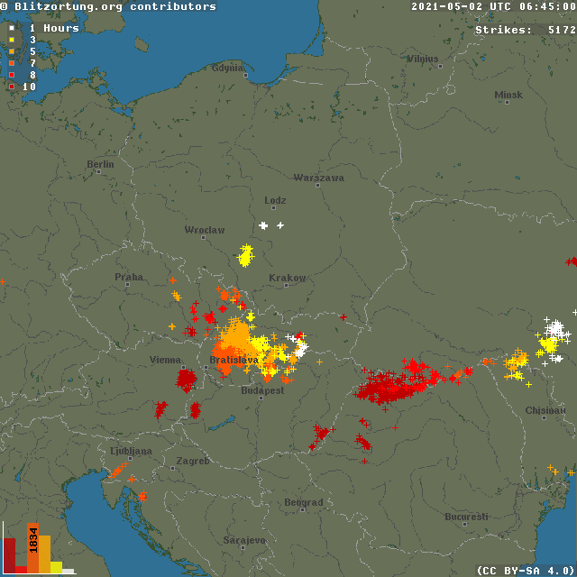 Tady i nějaká data ohledně blesků z ČR a okolí. Slovensko nakonec rozjezd později v noci, ale i u nás hlavně na JM celkem dobrý počet. Myslím si, že sice se zpočátku čekalo o dost větší množství bouřek, ale i přesto se jedná o vzácný úspěch.