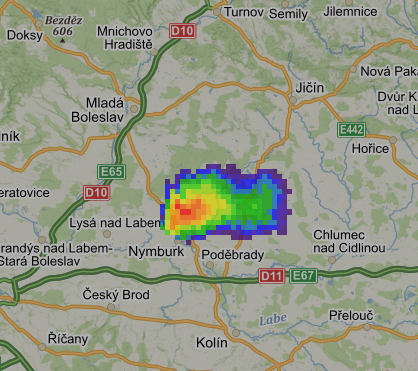 Výjimečná přeháňka nad Poděbradmi, drží už dlouho.