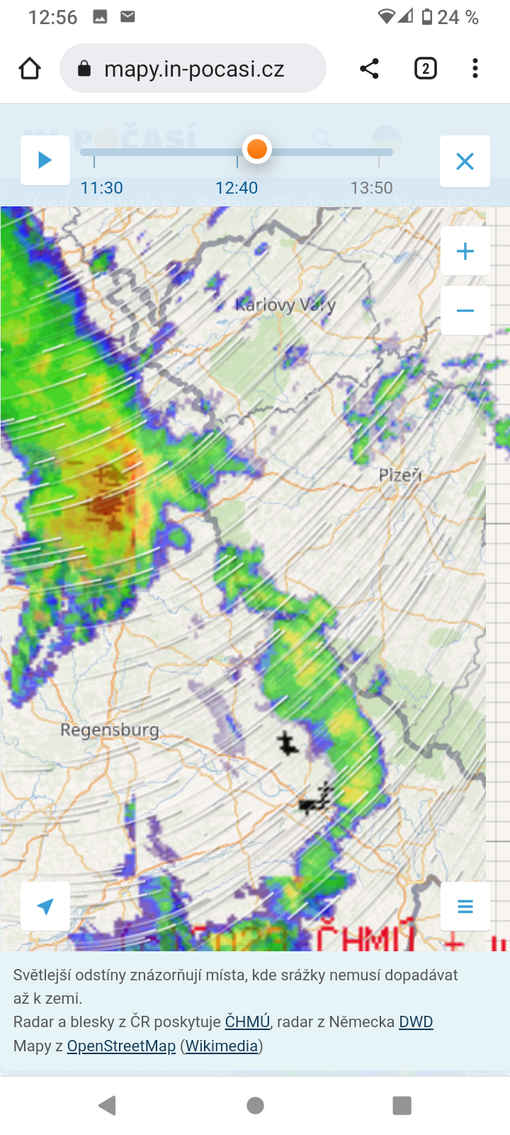 V Německu už bublají oranžové červené, zatím bez blesků a jde to směr sz Čechy. Někde na západě Čech je jasno takže to může pomoct, tady taky už občas prosvitne slunce. Může to skončit výborně nebo fiaskem.