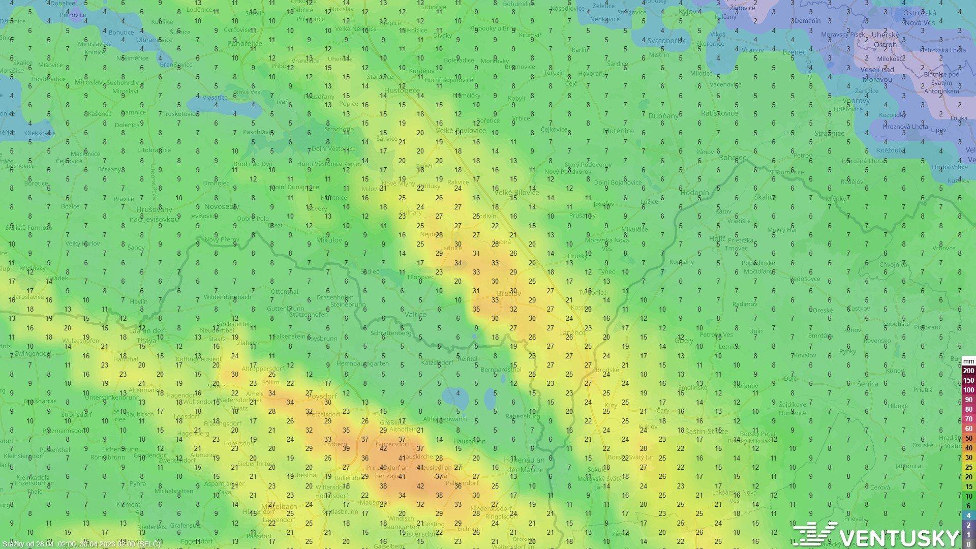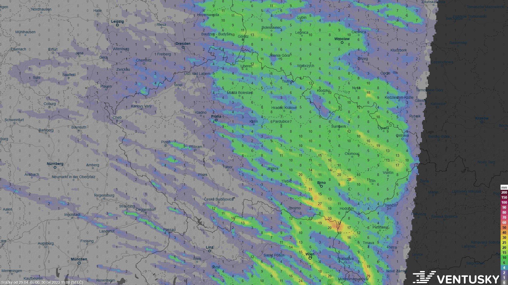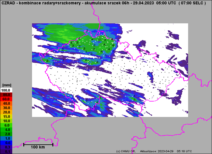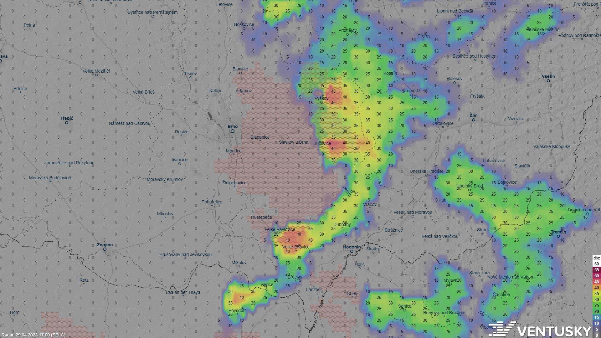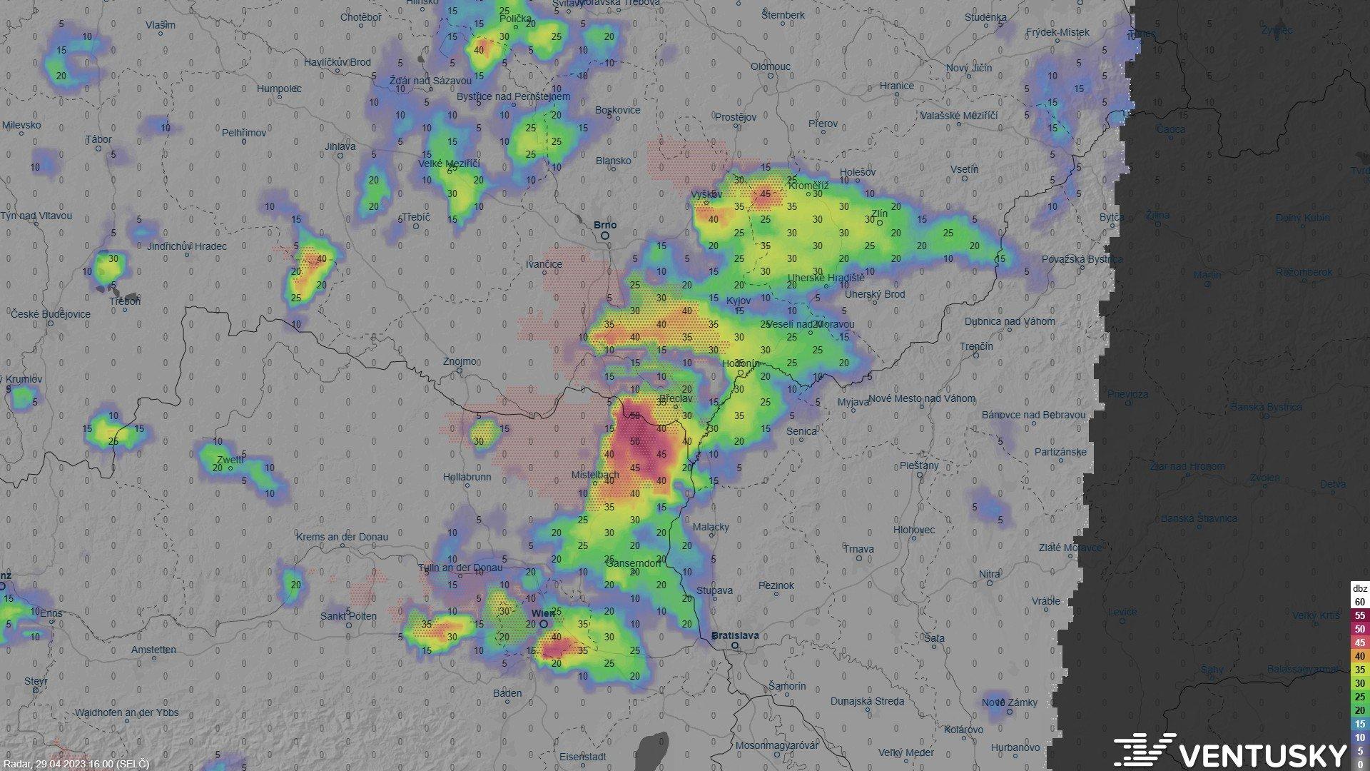 Ta shoda modelů icon (de) a aladin na výrazné úhrny na Břeclavsku a okolí je neuvěřitelná. Je to tam každý výstup pořád ve stejné oblasti až 30 mm srážek. Takhle to vypadá lokálně dost slušně. Slabší bouřka byla už na SZ Čech, ale to asi úplně nestojí za řeč.