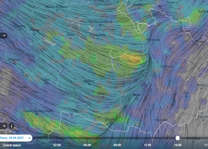 Dnes po poledni očekává bouřky snad každý Moravák Místy se dá předpokládat i zásyp kroupami. Rozdíl teplot mezi Vysočinou a JV Moravou bude nedílnou součástí konvekce.