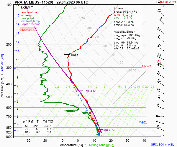 Radiosondáž 6:00 UTC - ta následující polední Prostějovská a Vídeňská bude žádaná