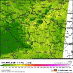 Modelově se podmínky čím dál tím více zlepšují a vypadá to tak, že energie v podobě MU-CAPE bude dosahovat hodnot až kolem 300-700J/kg. Dynamika bude trošku slabší.