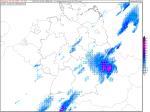 Podle mě by mohla vyjít právě tato varianta, jako má teď ICON-D2. Nejsilnější bouřky od Šumavy přes západní okraj Vysočiny (zhruba na půl cesty mezi Prahou a Vysočinou) a o něco více na SZ už jen „slabší" srážková oblast. Ale je to jenom varianta a nakonec můžou být nejsilnější bouřky právě v SZ části Čech.