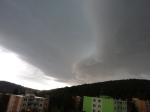 Vše se začalo dít po 16. hodině, kdy nás podle radaru něco přecházelo, ale nespadla z toho ani kapka. Viděl jsem slabé mammaty, ale nemohl jsem fotit, v tu dobu jsem hrál nohejbal. Předtím jsem tedy ještě několikrát viděl pileus, ale ten je tady poslední dobou tak běžný, že fotím už jen zajímavé kousky. Směrem k 18. hodině to začalo být ještě mnohem zajímavější, kdy západně od nás vznikla MCS s vnořenými supercelami. Jak už zde bylo napsáno, asi nejsilnější z těchto supercel zasáhla oblast od Veverské Bítýšky po Blansko a potom dále na severovýchod. Nás tohle jádro minulo asi o 10 km severozápadně, bohužel to bylo schované za lesy a viděl jsem jen náznak shelf cloudu a wall cloudu.