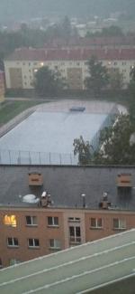 Tady byla včera letos největší bouřka, kroupy ale padaly jen v té první vlně v podvečer a pak už "jen" silný déšť.
