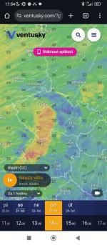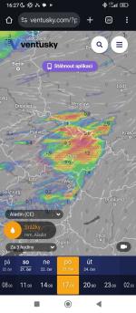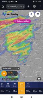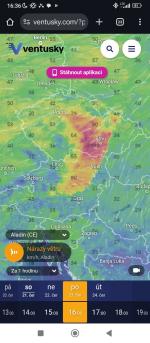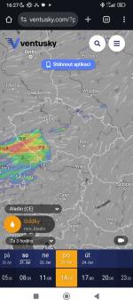 No Aladin už to zmírnil, jak jsem říkal. Nárazy už jsou většinou do 90 km/h. Zato ale ukazuje, že přes naší oblast by mohly projít i dva bouřkové systémy, tak uvidíme.