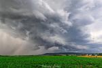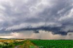 Ale to ještě nekončím.. Na Kladensku postupovala na Prahu velmi silná přeháňka, později se v tom objevily i blesky. Tudíž opět přesun na jih, nejdřív byla v plánu právě Lysá n/L, ale buňka spíše více postupovala k východu s lehkým stáčením na jih, takže jsem se přesunul až k Českému Brodu, kde jsem dorazil na polní cestu za pět vteřin dvanáct. Buňka vizuálně hodně přípomínala supercelu, zejména hodně zatočená struktura.(I na doppleru za Prahou měla rotaci až někam na východ Čech) Nakonec jsem stihl nafotit pár snímků než samotná silná bouřka přišla. Na jejím čele zejména silný nárazovitý vítr a kroupy o velikosti zhruba 1cm.