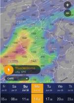 Ohledně vytvoření nočních bouřek ve středním Německu.. Energie v noci bude více než dostatek. ( SBCAPE až 1400 j/kg) dle modelů) Večerní sondáž ze západu Německa též značí ideální podmínky pro tvorbu bouřek, podpora k iniciaci bude díky studené frontě. Ten největší problém ale bude CIN (opak CAPE), některé modely ukazují hodnoty až kolem -150 j/kg, ale je to obrovská nejistota, tudíž jestli v noci vzniknou bouřky v Německu je tak 50/50. Píšu to kvůli tomu, že jestli něco vznikne, tak to ráno dojde na západ/sever Čech v podobě squall line. Další vývoj je dost nejistý, opět obrovská nejistota v podobě energie nad Českem, některé modely ukazují vysoké hodnoty již ráno a některý nulové. No sám mám budík na pátou ranní a uvidím dle radaru, ranní lov bych si ale rád dal.. po extrémně dlouhé době.