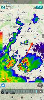 Ta supercela na západě Čech se možná už dostává do fáze slábnutí. Nedělal bych si naděje, že dojde ve větší síle bůhvíjak daleko až ke Krušným horám, ale možné to je... Stejně tak další podobné bouřky v Čechách pokud budou, tak jenom vzácně a ne moc.