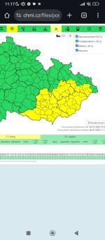 Nevím, jak vy, ale výstrahu bych do Čech nedával. Max jenom na to úplný východ Čech. Zkusím to sepsat podle sebe, zasahovat Vám do toho nebudu, samozřejmě jste se celkem trefil a vaše mapka by mohla odpovídat dnešní situaci.
