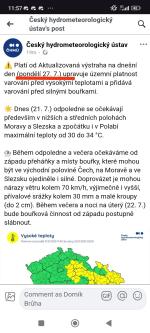 Uvidíme sever Čech tam má pořád slušnou šanci na bouřku. Možná i větší než na to východě. SZ je bez výstrahy.