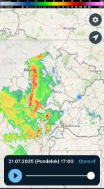 Nám se tu pěkně zalilo, dalo to 7.8 mm. Takový normální lijáček s občasným zahřměním.. Potom se to hlavní přesunulo dolů na Vysočinu, kde se to opravdu drží zuby nehty. Celé to jde jakoby zas zpátky (i tady trochu opět sprchlo), tam musí mít slušné úhrny.