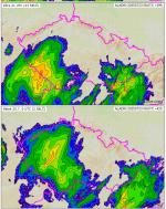 Jako chápu to tak, že Aladin počítá s dřívějším pohybem bouřek k S, SV a tím pádem by po SZ straně Alp byla Bavorskem volná cesta k Šumavě, naopak centrální Alpy by to blokly do centra ČR a jen něco málo by šlo na východ Moravy z Rakouska..